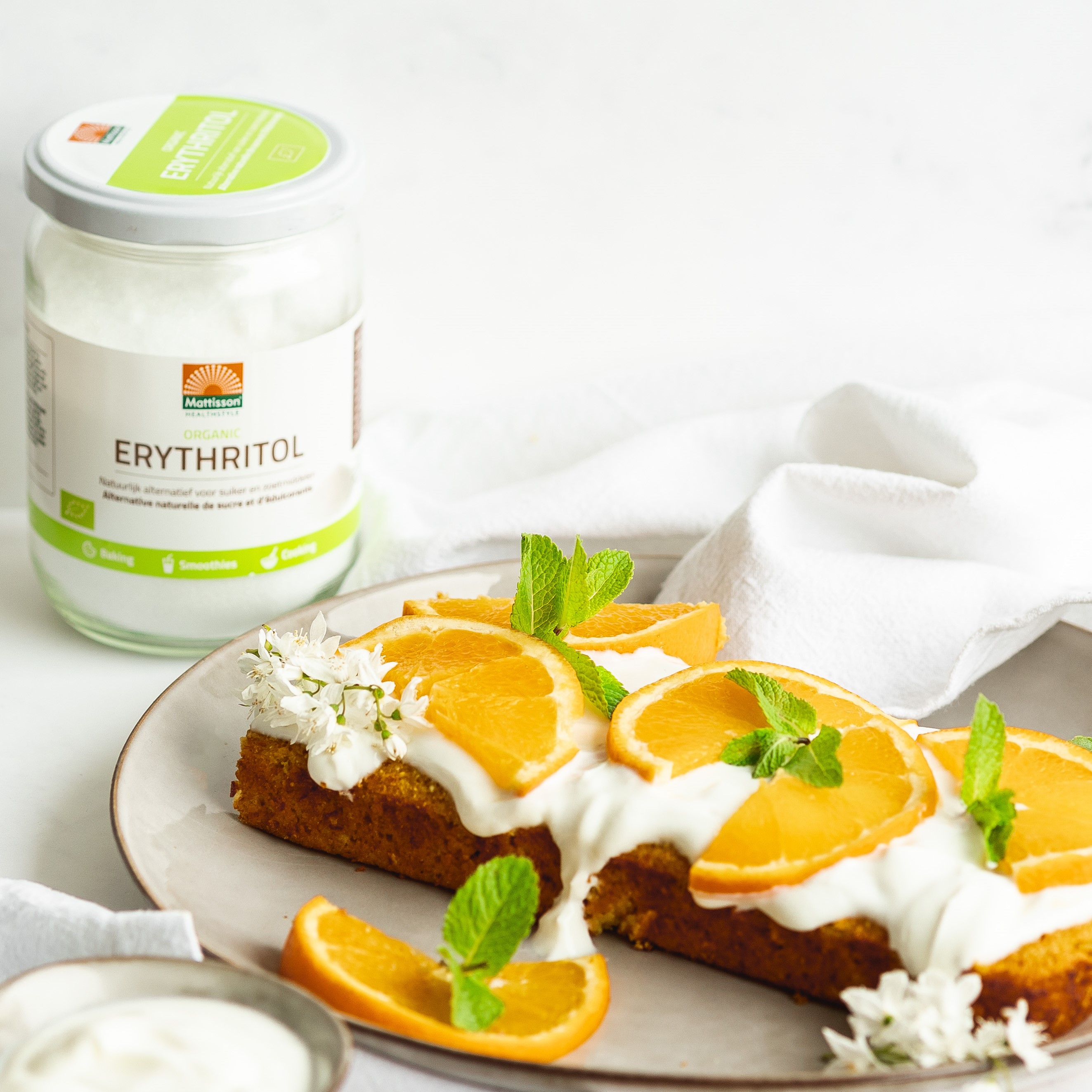 Sinaasappelcake met ErythritolMaak deze heerlijke sappige cake met sinaasappel in alle vormen: rasp, sap én pulp! Met Erythritol poeder als suikervervanger kan je extra genieten van dit gezonde feestje op je bord.