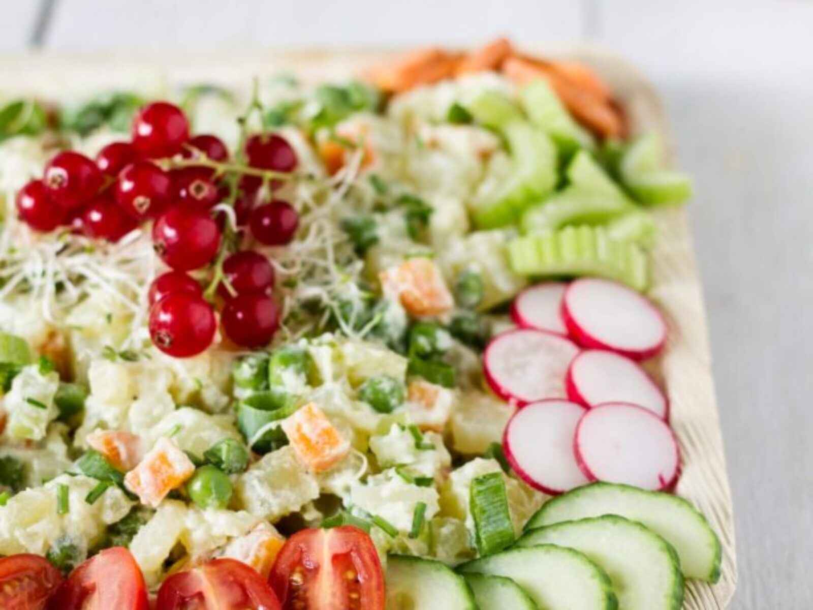 Ooit gekeken wat een gemiddelde huzarensalade aan ingrediënten bevat? Er staan vaak heel wat namen op het etiket die je nooit tegenkomt in een kookboek. Deze conserveermiddelen, smaakversterkers, zuurteregelaars, voedingszuren, kleurstoffen en suikers krijg je er ‘gratis’ bij als je een gemiddelde huzarensalade uit de supermarkt koopt, maar zijn dus uiteindelijk erg duur. Deze aardappelsalade: een heus huzarenstukje.