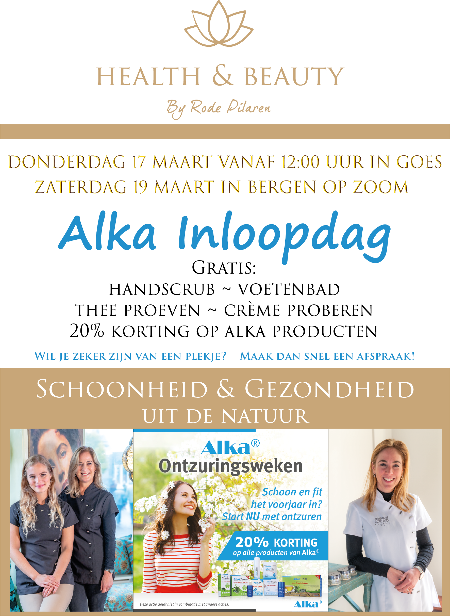Maak kennis met de Alka producten en geniet bijvoorbeeld van een fijne handscrub, een heerlijk voetbad, probeer de Alka Crème of proef de Alka thee en profiteer van 20% korting op alle Alka producten.