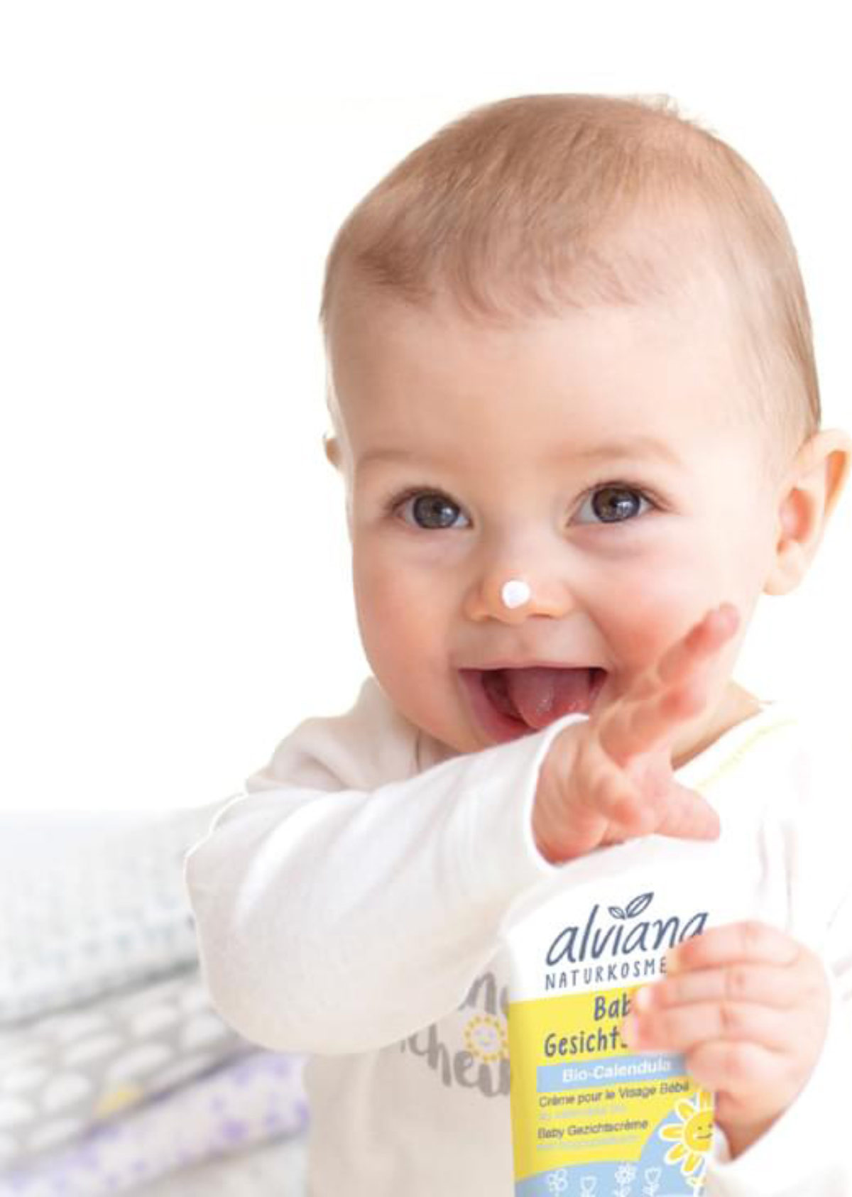 Babydoekjes voor gevoelige huid, Waslotion & Shampoo voor baby’s, Gezichtscrème voor baby’s, Hydraterende crème voor baby’s, Luiercrème voor baby’s, Hydraterende olie voor baby’s: de babyverzorgingsproducten van Alviana voorzien in alle behoeften van de jongste natuurliefhebbers.
