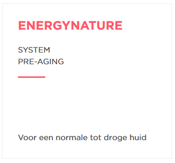 De systeemverzorgingsserie ENERGYNATURE – System Pre-Aging met een exclusief door ANNEMARIE BÖRLIND ontwikkelde werkzame stof uit de stamcellen van de Zwartewoudroos evenals biologische cafeïne, mentholderivaat, een fytonutriënt uit de tuinkers en hesperidine uit de bittere sinaasappel helpt om vermoeidheidsverschijnselen te verminderen en te verbergen door een extra energie- en vochtboost. Voor een natuurlijk stralende teint.