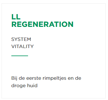 De systeemverzorgingsserie LL REGENERATION maakt gebruik van het LL-biocomplex met een zuiver plantaardige werking waarop patent is aangevraagd. De combinatie van waardevolle, natuurlijke verzorgende stoffen bevordert de regeneratie en stimuleert aantoonbaar de celvernieuwing. Voor een zichtbare strakkere en gevitaliseerde huid.