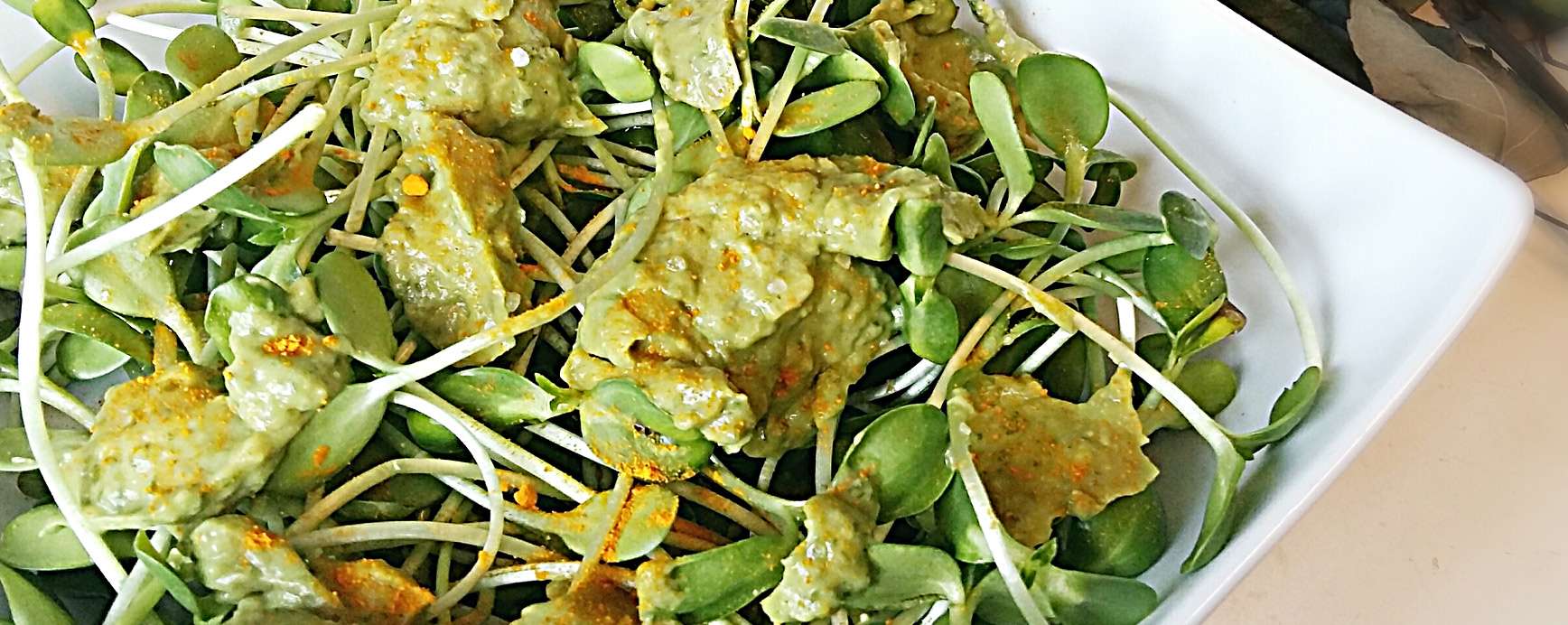 Ingrediënten voor avocado dip met peterselie, tarwekiemen en komijn