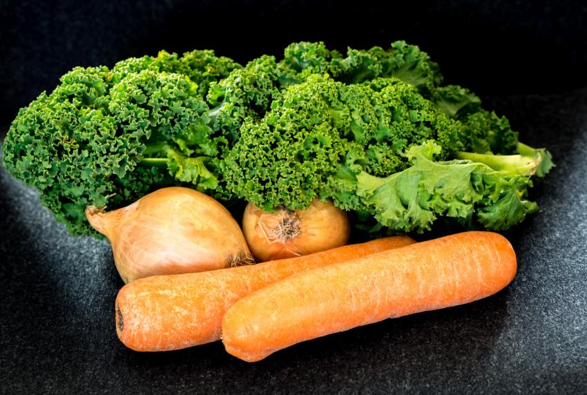 - De wortelen of zoete aardappelen schillen en in gelijke stukken snijden. Doe ze samen met de gewassen en grof gehakte boerenkool in een stoompan en stoom het in ca. 10 minuten beetgaar. Doe ze in een schaal en doe het zout en de honing erover.