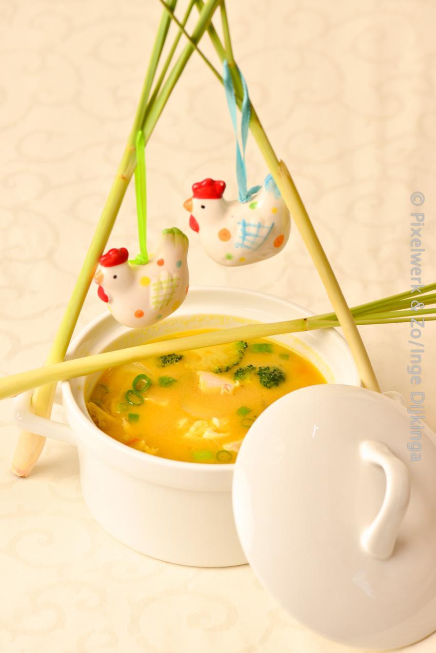 - Beetje kippenvet van de bouillon (anders beetje kokosolie of roomboter)