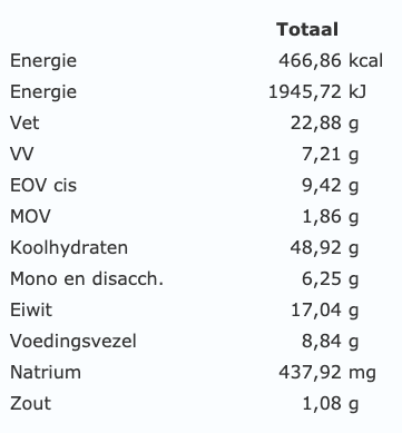Dat ik fan van haver ben, weten jullie natuurlijk al lang. Maar dit gerecht overtreft mijn stoutste verwachtingen. De Dutch Weed Burger zegt de beste burger van de planeet te zijn. Ik opteer met deze voor de lekkerste burger van de planeet. Zonder soja en gluten bovendien. De plannen om de Shiitake en oesterzwammen ook uit Nederland (zelfs uit Westerwolde) te betrekken vorderen mooi. Los van deze heerlijke smaken was er nog een verrassing voor mij: niet gedacht dat deze burger door de combinatie van eiwitten zoveel eiwit zou bevatten. Niet zoveel als de Dutch Weed Burger (21%) maar toch heel eiwitrijk. Hieronder de voedingswaarde per persoon. Ook zonder schapenkaas erg lekker als je geen zuivel eet. Binnenkort ook de VEGAN versie van deze burger. Kijken of die net zo lekker wordt!