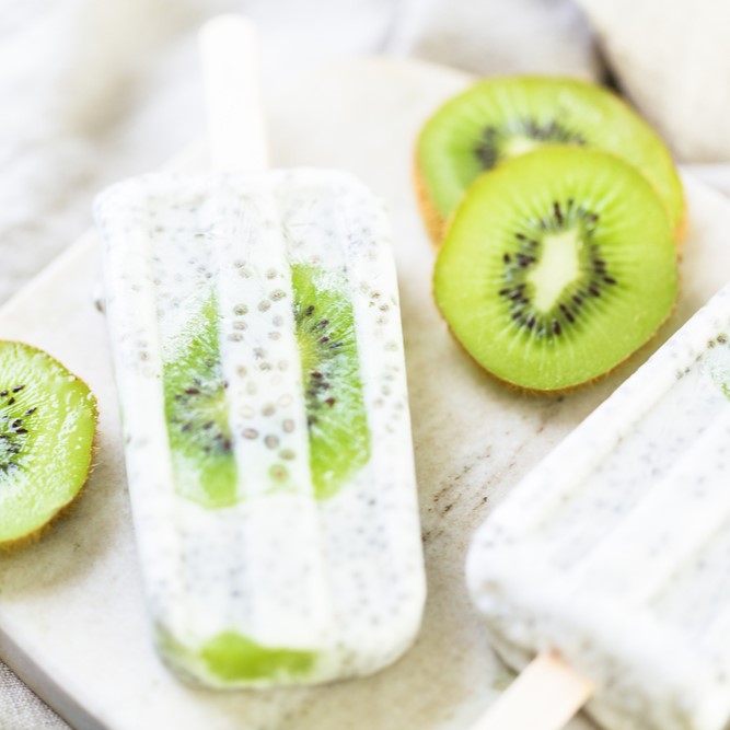 Ontdek een verfrissend en gezonde snack met deze chiazaad kiwi ijsjes. Deze ijsjes combineren de voedingskracht van chiazaad met de zoete en sappige smaak van kiwi. Een perfecte manier om jezelf te verwennen met het warme weer.
