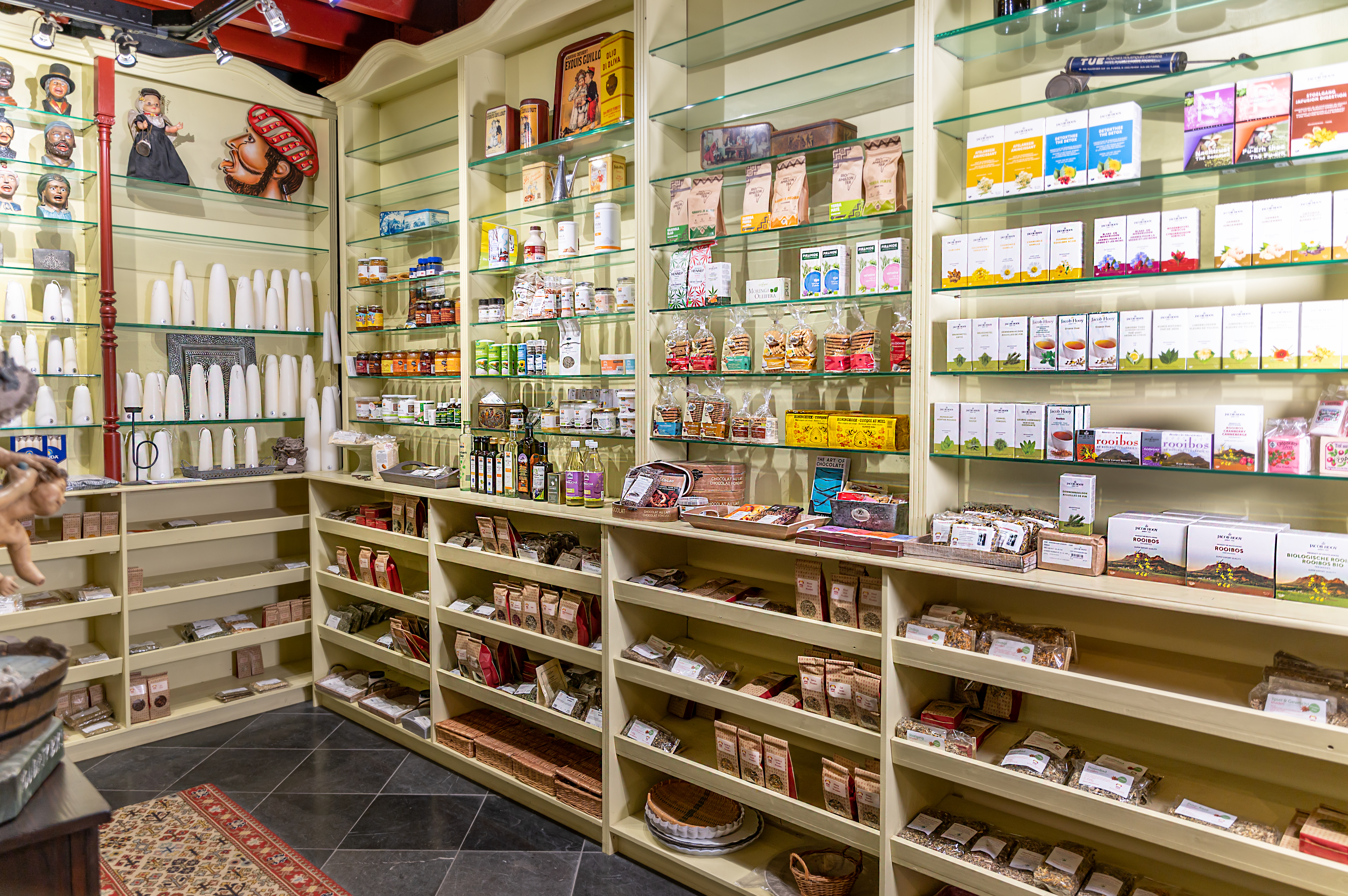 Nieuwe interieurstukken, zoals de metershoge vitrinekasten en de wenteltrap, kregen een nostalgische uitstraling. Langs de wanden staan de naamgevers van de winkel: sierlijke pilaartjes, geschilderd in een warmrode tint. Maar vergis u niet, achter die nostalgische huiselijkheid gaat een hypermodern bedrijf schuil, dat werkt volgens de nieuwste inzichten in de natuurgezondheid.