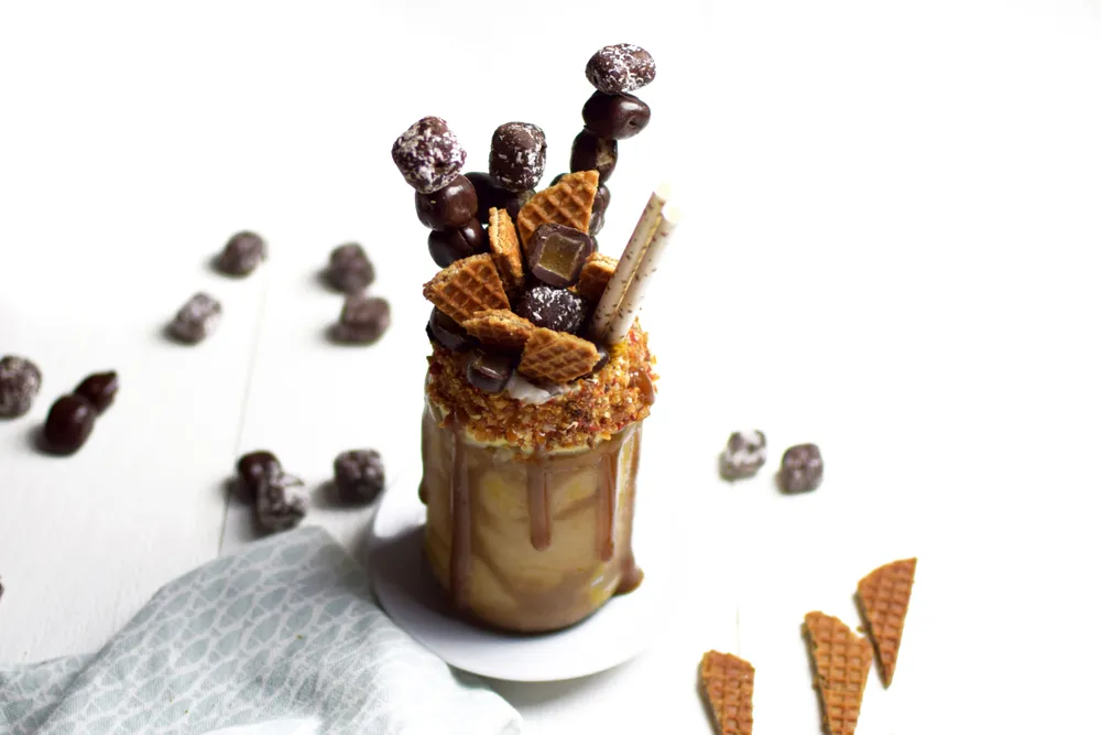 Deze vegan freakshake is voor jou als je een zoetekauw van de bovenste plank bent. Echt over de top, maar dubbel en dwars genieten. Want een freakshake maken is eigenlijk nog leuker dan een een freakshake kopen! Met dit recept kun je heel gemakkelijk zelf een freakshake maken. Je hoeft alleen maar een hoop zoetigheid in huis te halen! Oh, en het is ook een beetje een healthy freakshake natuurlijk, want de shake zelf is met kurkuma!