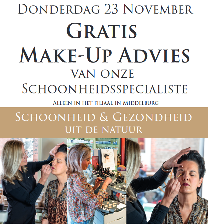 Gratis Make-Up AdviesKom langs in ons filiaal in MIDDELBURG op 23 November voor een GRATIS en vrijblijvend Make-up advies!