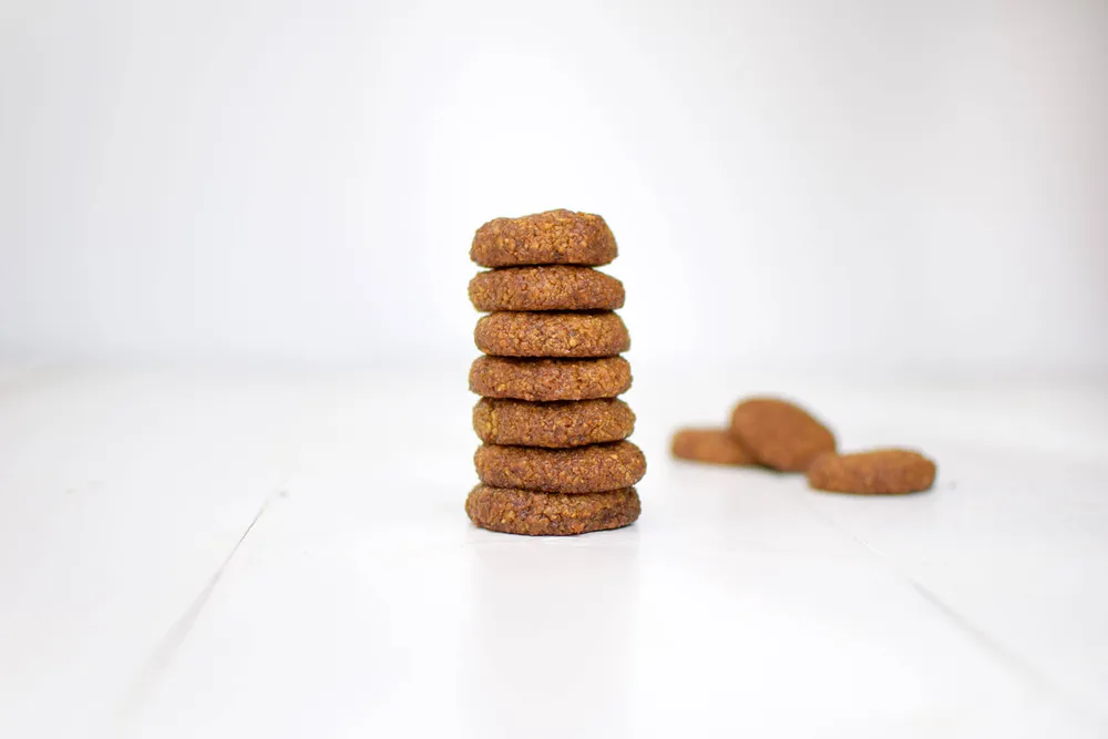 Deze vegan haverkoekjes zitten vol met goede ingrediënten. De basis is havermout, wortel en noten. We zoeten de havermoutkoekjes met kokosbloesemsuiker, want dat is suiker in z’n puurste vorm. Doordat de glycemische index van kokosbloesemsuiker laag is (ongeveer gelijk aan quinoa en yoghurt), gaat je bloedsuikerspiegel er niet enorm van pieken.