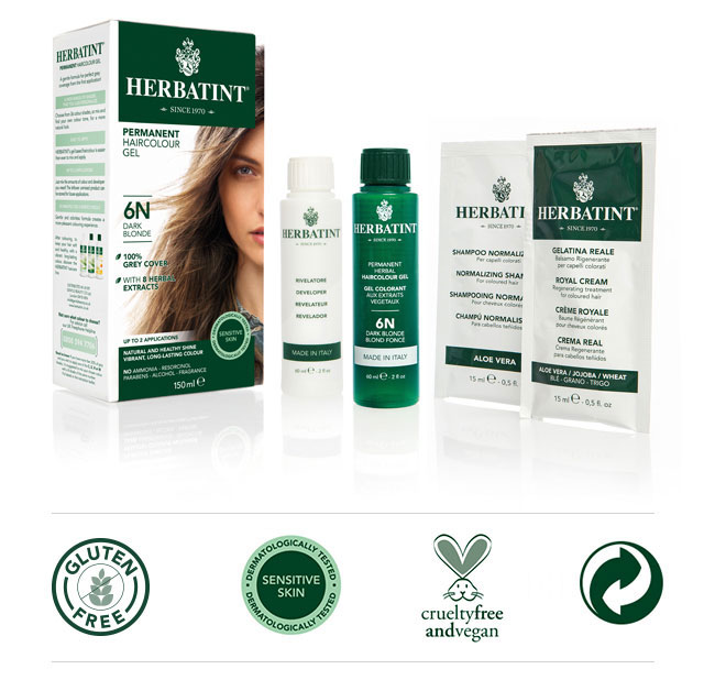 Herbatint is een permanente haarkleuringsgel zonder ammoniak, verrijkt met 8 organische kruidenextracten. Herbatint geeft het haar een zeer natuurlijke en intense kleur en dekt uw grijze haar voor 100% vanaf de eerste toepassing. Uw haar krijgt een heldere en levendige kleur en is direct gezonder en natuurlijk mooi.