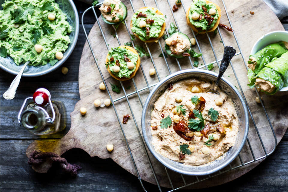 *Hummus wordt traditioneel gemaakt van kikkererwten. Maar je kunt ook kiezen voor tuinbonen, doperwten, veldertjes, linzen of een combinatie maken van meerdere peulvruchten.