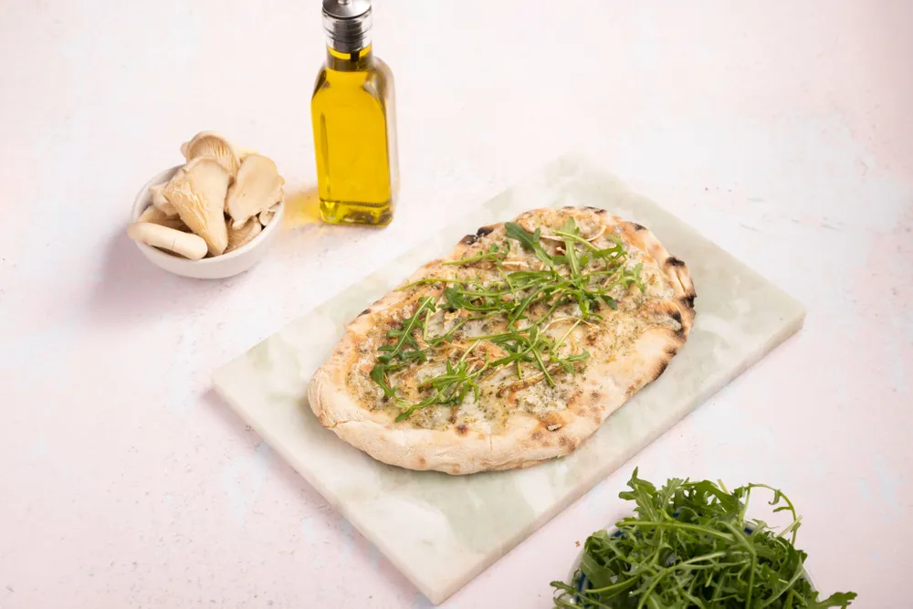 Pinsa combineert het beste van pizza en focaccia. Een luchtige bodem, die toch ook knapperig is. Als pinsa je de laatste tijd nog niet opgevallen was, moet je dit recept echt eens proberen! Op pinsa hoef je niet per se tomatensaus te doen, zoals je mestal bij pizza doet. Vegan roomkaas is ook een goede optie. Combineer het met oesterzwammen en rucola, en je hebt een vegan pinsa Provenzale waar je U tegen zegt. De oesterzwammen geven het een lekkere bite die ergens misschien lijkt op vis of vlees. Aanrader!