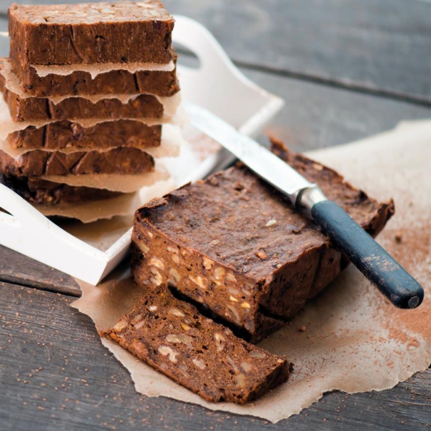 Snijd de pompoen doormidden en hol deze met een eetlepel uit. Schil de pompoen, snijd deze in grove stukken en kook de pompoen beetgaar in een laagje water. Voeg ca. 1 minuut voor je de pan van het vuur haalt de gedroogde, ontpitte pruimen/dadels toe. Laat het water goed weglopen, doe de kokosolie erbij en pureer/stamp het geheel. Maal de noten en pitten tot meel en voeg ze, met de rest van de ingrediënten toe en proef even. Voeg naar eigen smaak nog carobe, cacao,specerijen of een klein beetje kokosbloesemsuiker toe. Doe op het laatst pas de psylliumvezels/agar agar of pectine erdoor. Doe een vel bakpapier in een cakevorm en doe het geheel hierin. Druk goed aan met de bolle kant van een lepel. Bak de cake ca. 50-55 minuten in een voorverwarmde oven op 140 graden. Laat goed afkoelen en verwijder het bakblik/bakpapier. Laat opstijven in de koelkast voor je de cake gaat aansnijden. Erg lekker om een plakje te besmeren met een beetje roomboter of kokosolie.