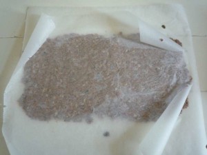 Maak het mengsel plat tussen twee bakpapiertjes eventueel met een deegroller.