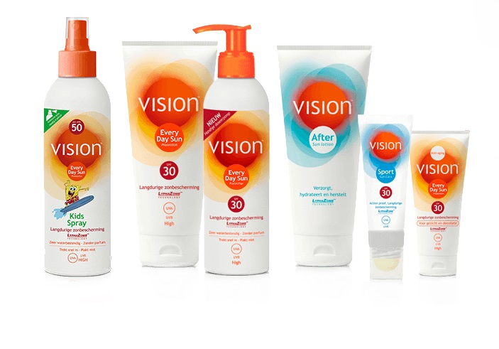 Vertrouw daarom op Vision, de expert in langdurige zonbescherming. Vision is zeer waterbestendig en 100% parfumvrij. Vision heeft een uitgebreid assortiment zonnebrandproducten die je huid langdurig* beschermen tegen zonnestralen. Alle lotions & sprays zijn volledig vrij van parfum en bevatten geen parabenen. En dankzij de speciaal ontwikkelde LipoDefenseTM technologie zorgt Vision voor de best mogelijke zonbescherming.
