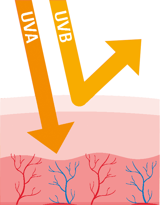 Wat is UVA en UVB?UVB zijn de zonnestralen die de opperhuid verbranden en zorgen voor een rode verbrande huid. UVA is de meest schadelijke. UVA dringt door in de opperhuid en beschadigd de bloedvaten in het lichaam en zorgen voor blijvend letsel. Daarnaast laat het de huid sneller verouderen.