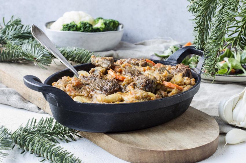- 500 gram biologische runder-/lamsstooflappen of kip (van dieren die hebben losgelopen)