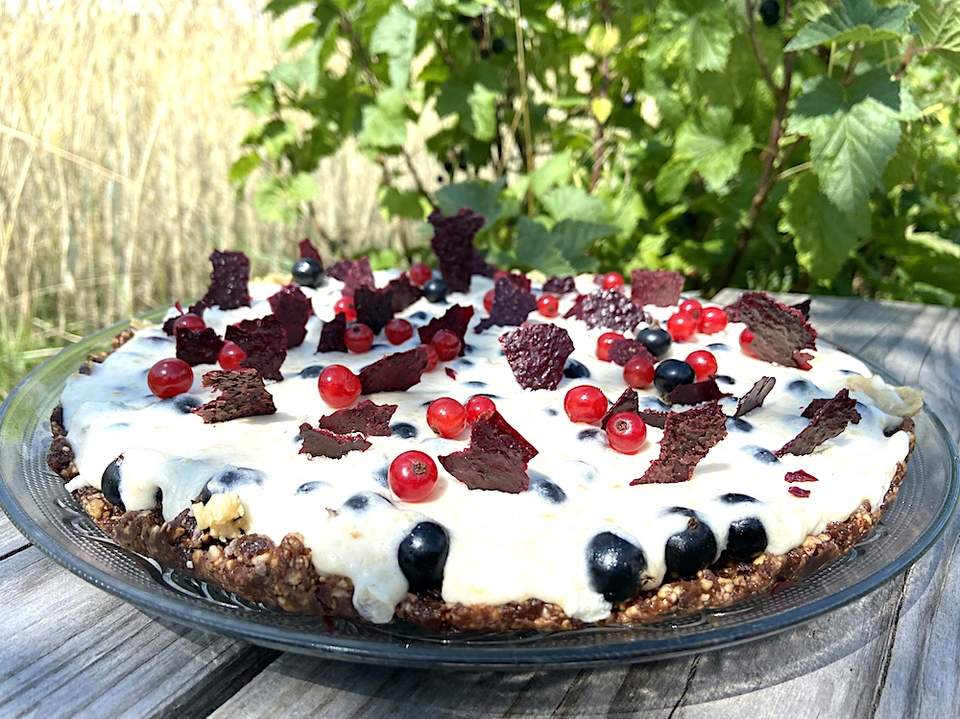 Een overheerlijke taart met rauwe zwarte bessen. Supersnel te maken zonder oven. Mijn ervaring is dat er niet veel overblijft van deze taart als je hem eenmaal op tafel zet. Machtig smullen, letterlijk en figuurlijk.