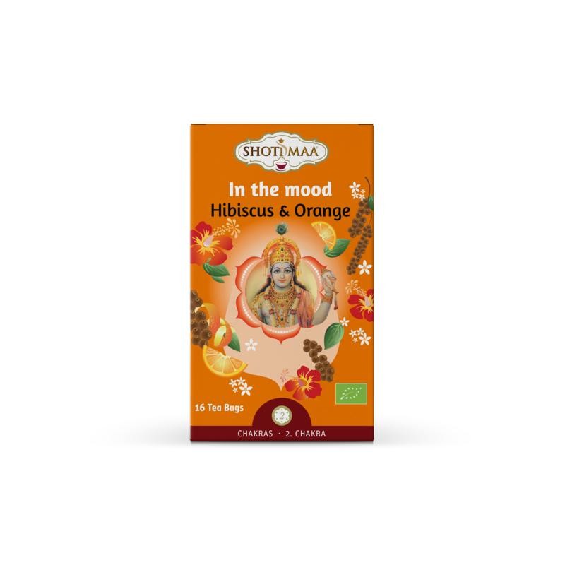 Ayurvedische kruiden- en specerijenthee met hibiscus en sinaasappelschil.