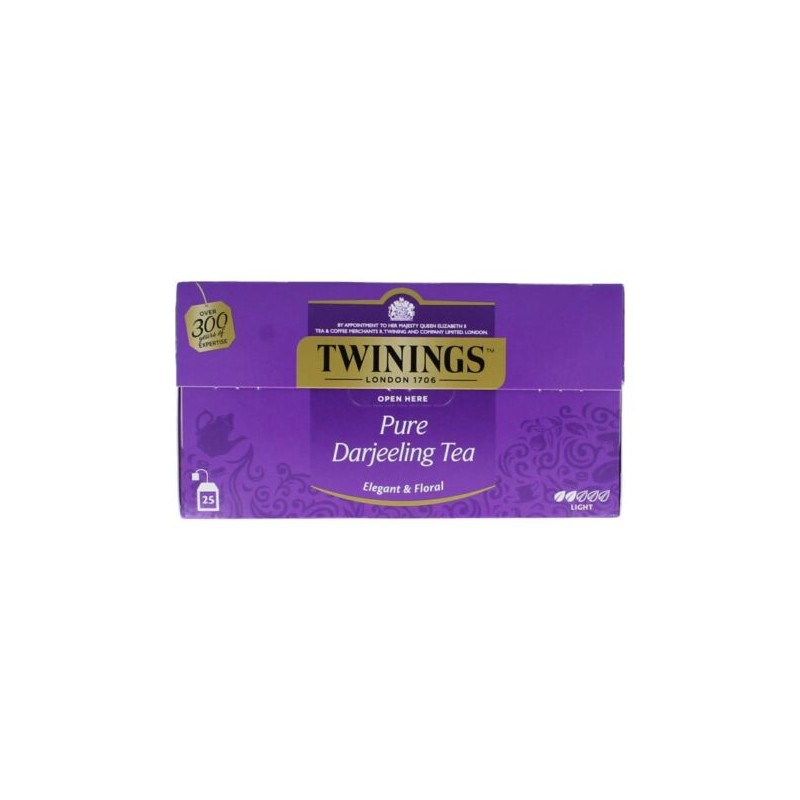 Twinings Darjeeling Thee verwent de liefhebbers die een fijne smaak boven een krachtig aroma verkiezen. De hoogte, het klimaat, de zon en het soort theeplant zorgen voor een thee van uitzonderlijke kwaliteit waarvan de blaadjes nauwkeurig worden uitgekozen. Deze koperkleurige thee heeft een uiterst verbazende smaak: tegelijk zacht en scherp, met een aroma van rijpe vruchten en geraffineerde muskaat.