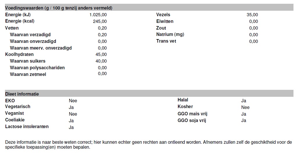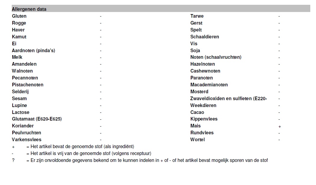 Dit product is non-GMO en behoeft derhalve geen declaratie conform verordeningen (EU) 1829/2003 en 1830/2003.