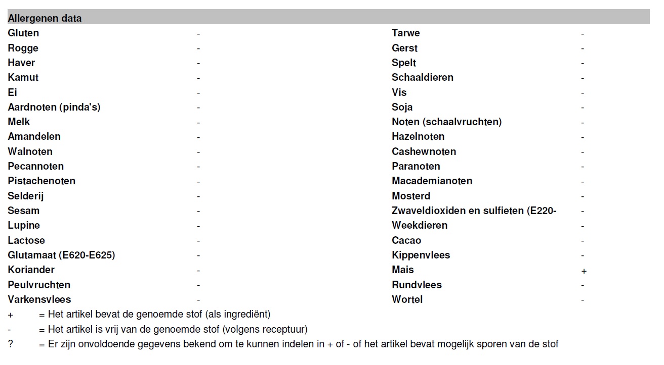 Dit product is non-GMO en behoeft derhalve geen declaratie conform verordeningen (EU) 1829/2003 en 1830/2003.