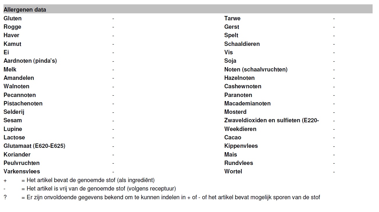 Dit product is non-GMO en behoeft derhalve geen declaratie conform verordeningen (EU) 1829/2003 en 1830/2003.