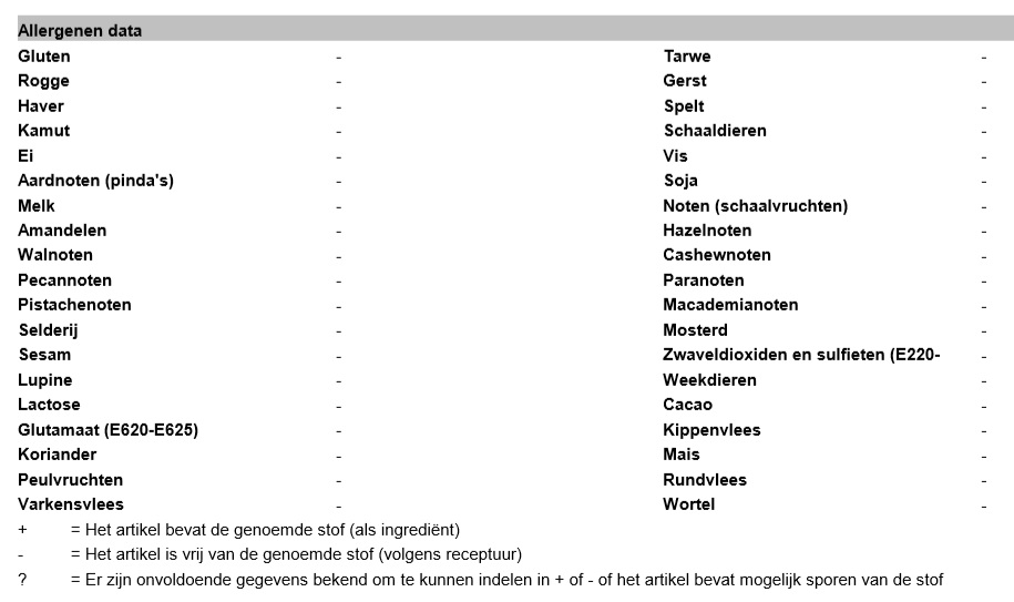 Dit product is non-GMO en behoeft derhalve geen declaratie conform verordeningen (EU) 1829/2003 en 1830/2003.
