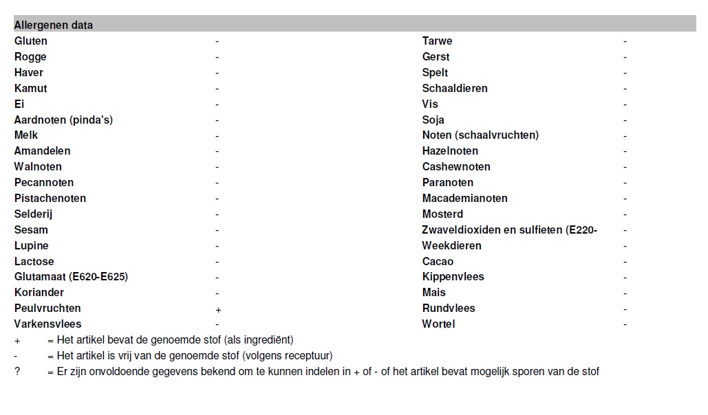 Energie (kJ) 1.004, Energie (kcal) 239, Vetten 0,3, Waarvan verzadigd 0,2, Koolhydraten 85,2, Waarvan suikers 0,2, Waarvan polyolen 66,2, Vezels 0,1, Eiwitten 0,4, Zout 0,1