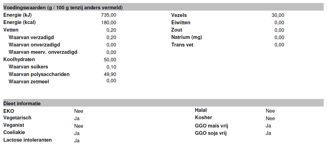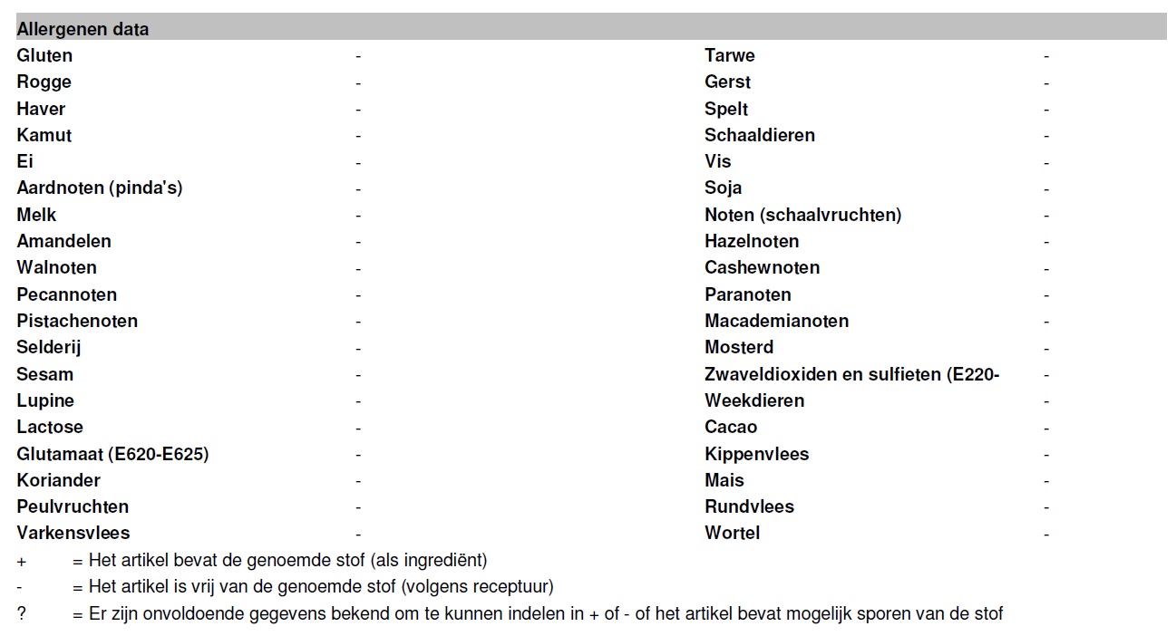 Dit product is non-GMO en behoeft derhalve geen declaratie conform verordeningen (EU) 1829/2003 en 1830/2003.