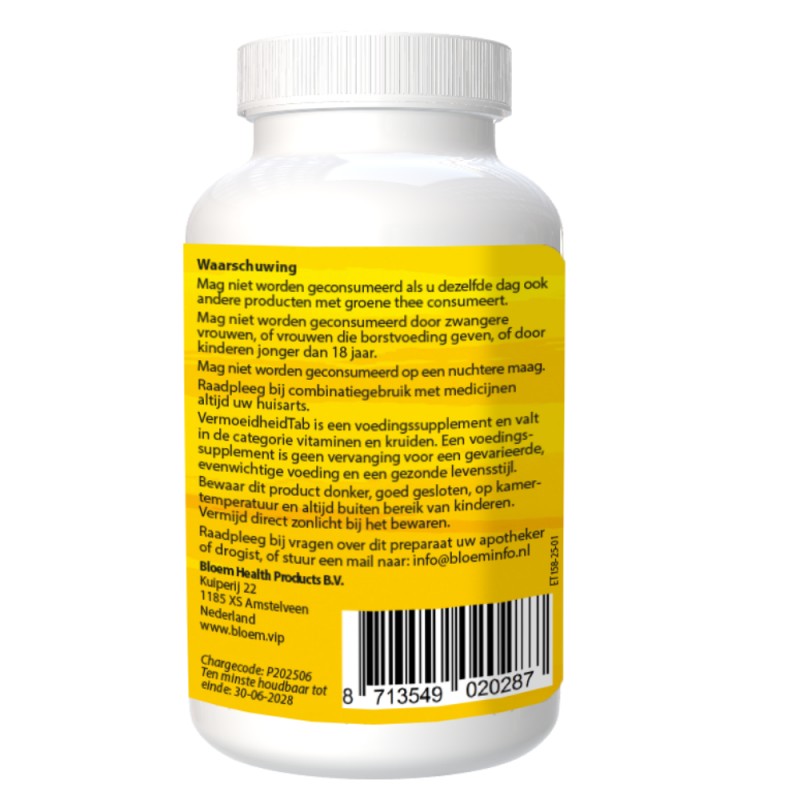 Mag niet worden geconsumeerd als u dezelfde dag ook andere producten met groene thee consumeert.