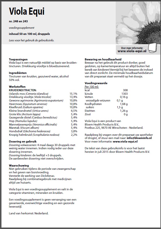 Viola Equi is een natuurlijk middel op basis van kruidentincturen. Driekleurig viooltje is bloedzuiverend.