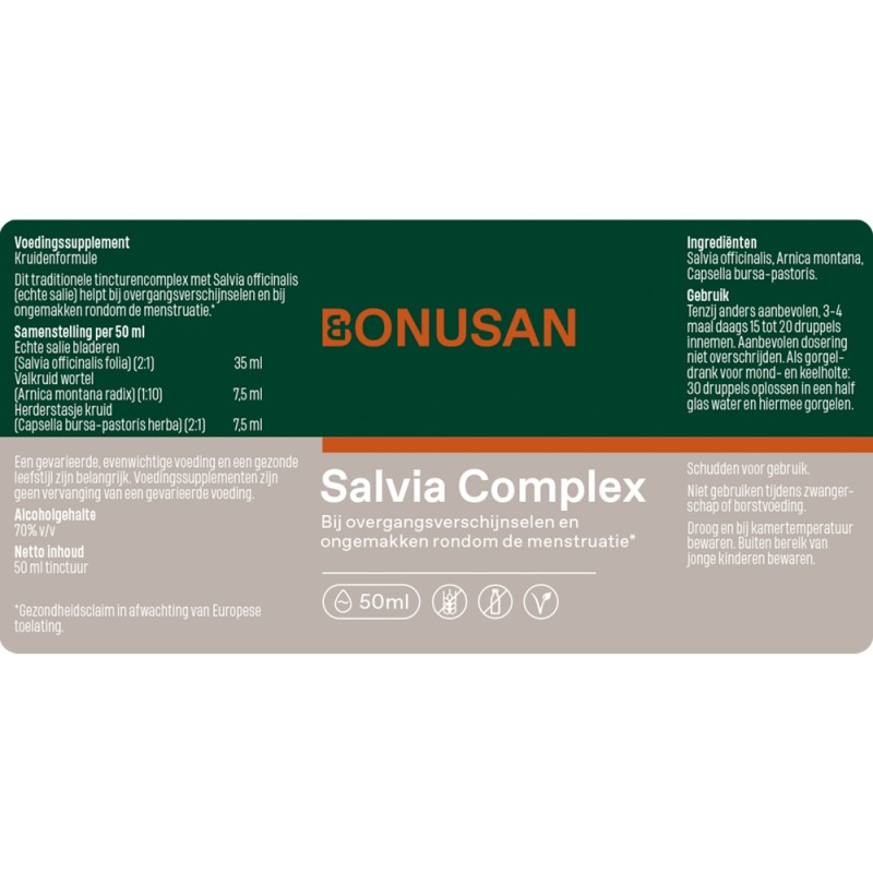 Bonusan Salvia officinalis complex is een speciaal samengestelde tinctuur met onder andere Salvia officinalis en Arnica montana.