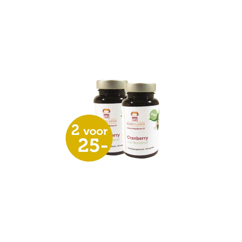 Bevat Cranberry- en Beredruifpoeder. Cranberry bevat veel vitaminen en mineralen zoals Vitamine C, E, B6, K en Mangaan. Beredruif ondersteunt een gezond milieu in de Blaas* Vitamine C heeft een positieve invloed op het immuunsysteem.