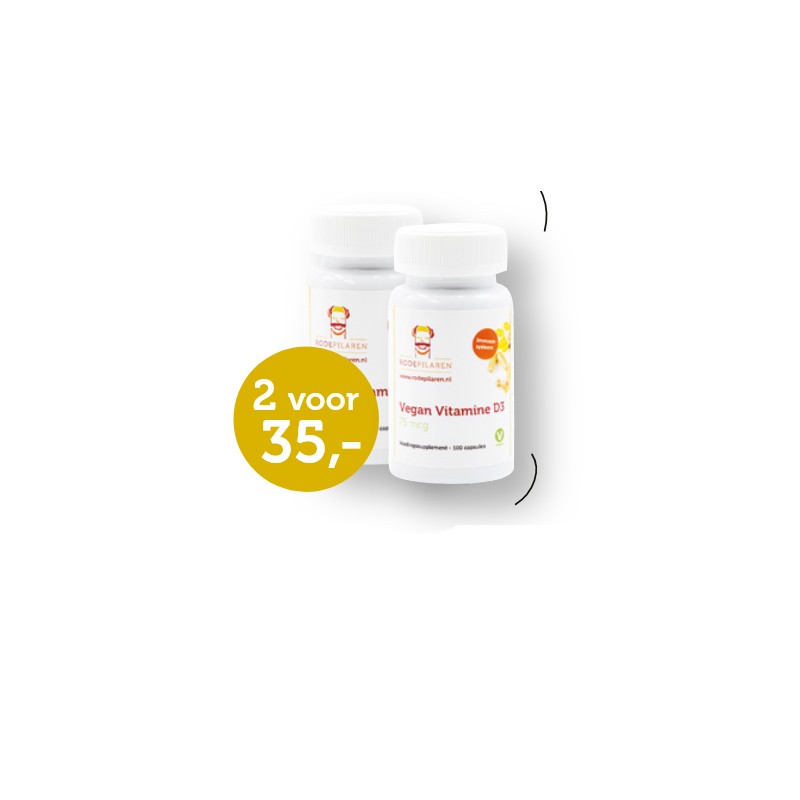 Vegan Vitamine D3 van de Rode Pilaren is een voedingssupplement vrij van sacharose, lactose, gluten, soja-eiwit, niet natuurlijke conserveermiddelen en synthetische kleur-, geur- en smaakstoffen.
