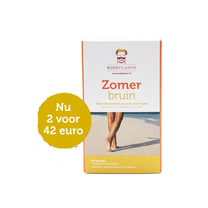 De Rode Pilaren Zomerbruin bevat vitamine C en E en de mineralen selenium en zink. Deze antioxidanten helpen van binnenuit beschermen tegen oxidatieve schade door UV-straling en zonlicht. Op deze manier biedt De Rode Pilaren Zomerbruin een extra stukje bescherming als je de zon in gaat.