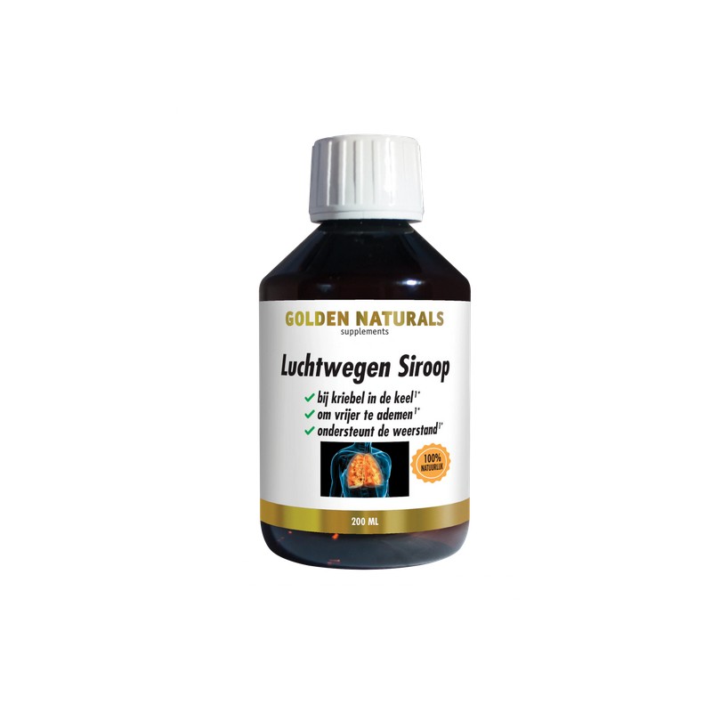 Golden Naturals Luchtwegen Siroop is een siroop met Sambucus nigra, honing en mirte-olie ter ondersteuning van de luchtwegen en de weerstand.