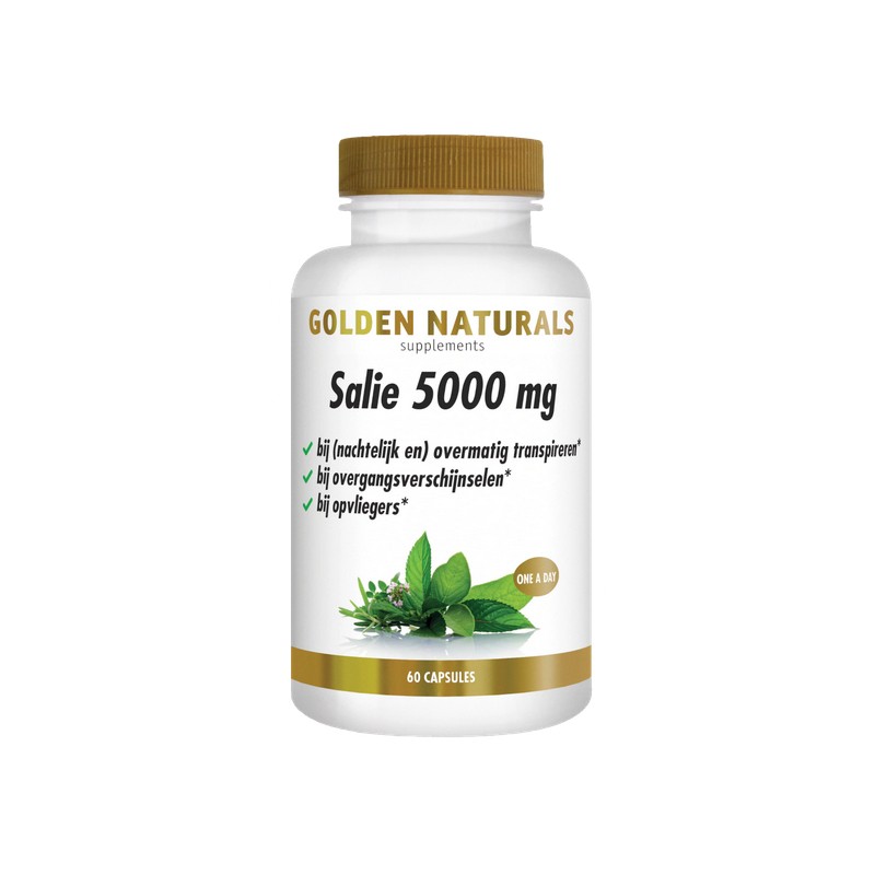 ‘Salvia’ is het Latijnse woord voor redden of genezen. Salvia officinalis (echte salie) is dan ook een kruid dat al eeuwenlang voor verschillende doeleinden wordt gebruikt. Bijzonder aan salie is de adaptogene werking. ‘Adaptogeen’ betekent het (beter) kunnen aanpassen aan de omstandigheden, zoals bijvoorbeeld in stresssituaties of in woelige periodes. Naast veelgebruikt ingrediënt in de keuken, heeft salie de reputatie dat het goed zou zijn voor een heldere geest. Daarnaast is het een natuurlijke verzachter van de luchtwegen. Tegenwoordig is salie vooral geliefd bij vrouwen in de overgang, omdat het ondersteuning biedt bij typische overgangsverschijnselen zoals opvliegers en overmatig (nachtelijk) transpireren. Golden Naturals Salie 5000 mg is hoog gedoseerd en snel opneembaar dankzij toegevoegde BioPerine®. Bovendien is het veilig te gebruiken in combinatie met medicijnen en bij hormoon gerelateerde kwesties.