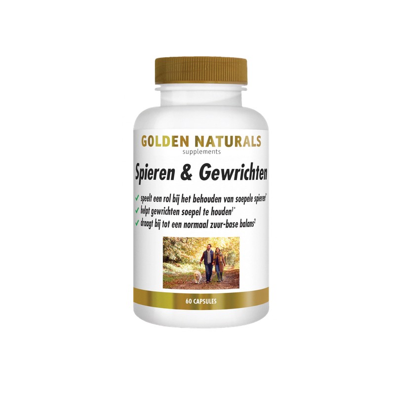 Golden Naturals Spieren & Gewrichten capsules bevat Boswellia serrata extract dat bijdraagt aan de gewrichtsfunctie; magnesium speelt een rol bij het behouden van soepele gewrichten; mangaan is goed voor de aan/opbouw van kraakbeen in de gewrichten; Taraxacum officinale radix dat speelt een rol bij het behouden van soepele gewrichten; PEA is rijk aan zink dat draagt bij tot een normaal zuur-basemetabolisme.