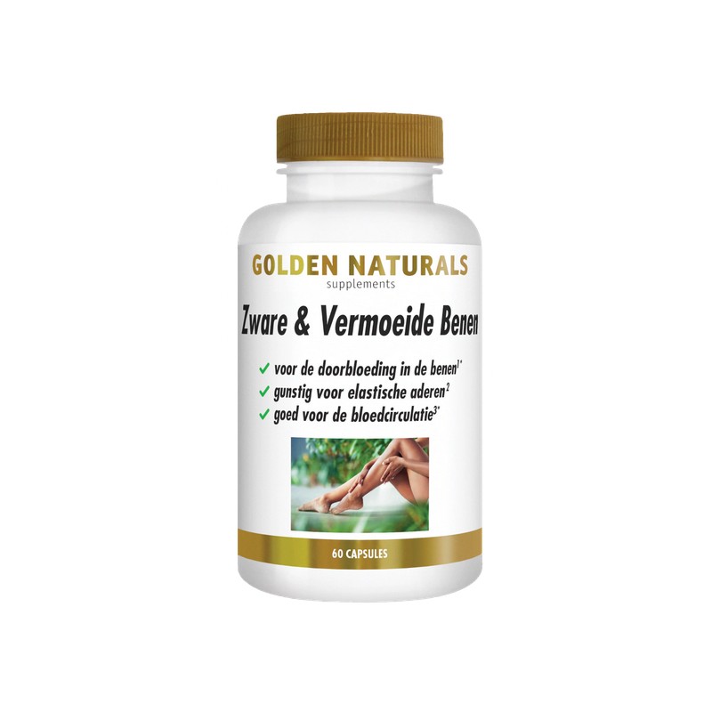 Steeds meer mensen hebben een beroep waarbij ze langdurig in dezelfde houding zitten. Of ze zijn door hun gevorderde leeftijd minder mobiel geworden. Dit kan de bloedcirculatie in je benen beïnvloeden, omdat je bloedvaten en aderkleppen extra hard moeten werken. Daardoor kunnen je benen zwaar of vermoeid aanvoelen. Regelmatige en gevarieerde beweging zoals (hard)lopen, fietsen of traplopen kan helpen om je doorbloeding op gang te houden. Ook een (natuurlijk) supplement kan daaraan bijdragen. Golden Naturals Zware & Vermoeide Benen is speciaal samengestelde formule met diverse natuurlijke ingrediënten. Het bevat onder meer witte paardenkastanje, stekelige muizedoorn, Gelderse roos, Aziatische waternavel en druivenpitextract. Stekelige muizedoorn en druivenpitextract bevorderen de bloedcirculatie in je benen. Druivenpitextract helpt bij het gevoel van zware en vermoeide benen. Vitamine C is gunstig voor elastische aderen.