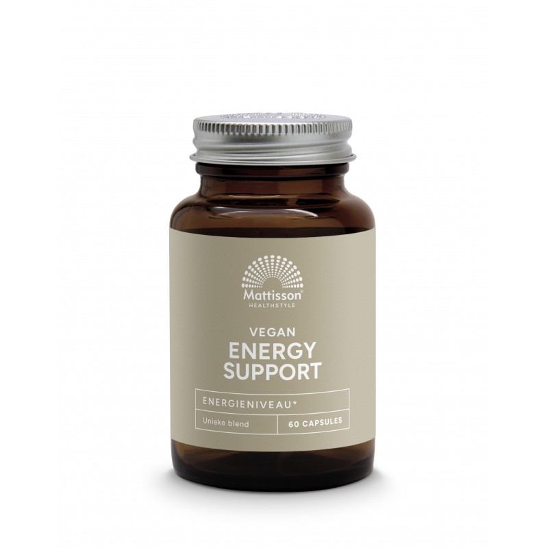 Mattisson energy support bestaat uit Zwarte Maca, Guarana, Cordyceps en Magnesium Malaat.