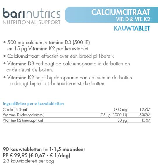 BariNutrics® Calciumcitraat + Vit.D & Vit. K2 Kers Metagenics