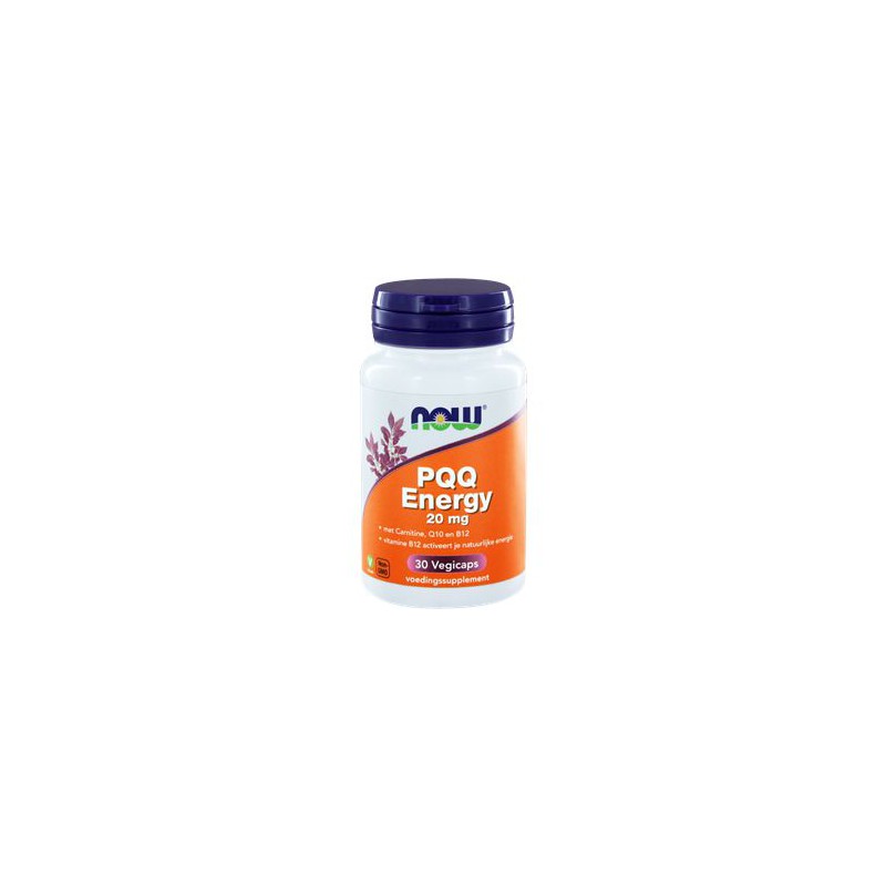- PQQ Energy bevat een combinatie van PQQ, co-enzym Q10, acetyl-L-carnitine en vitamine B12 als co-enzymatisch methylcobalamine.