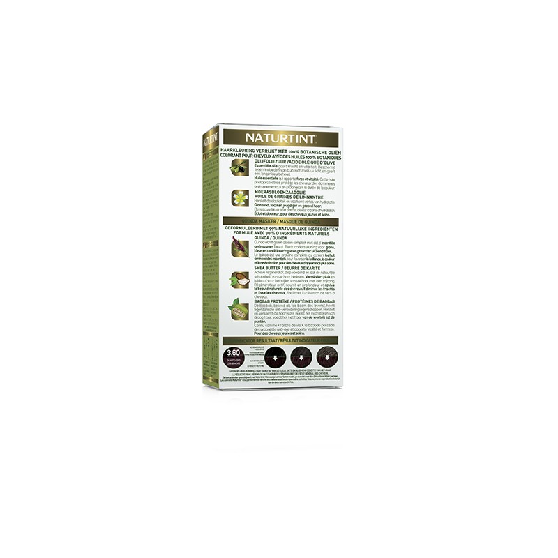 Naturtint is een voedende kleuring waarmee je met zorg kleurt. Deze haarkleuring bevat de nieuwste formule Nutrideep. Deze formule heeft een multi vermenigvuldigend effect, regenereert Nutrideep de haarvezel, geeft het 3 keer meer kracht, hydratatie en volume, zijn actieve ingrediënten verbeteren de conditie van uw haar en de duurzaamheid van de kleur door een beschermschild te vormen om het effect van UV stralen te neutraliseren.