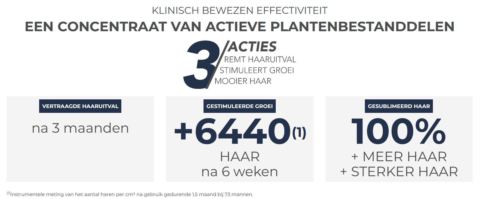De behandeling tegen haaruitval met drievoudige werking om haaruitval tegen te gaan en haargroei te stimuleren.