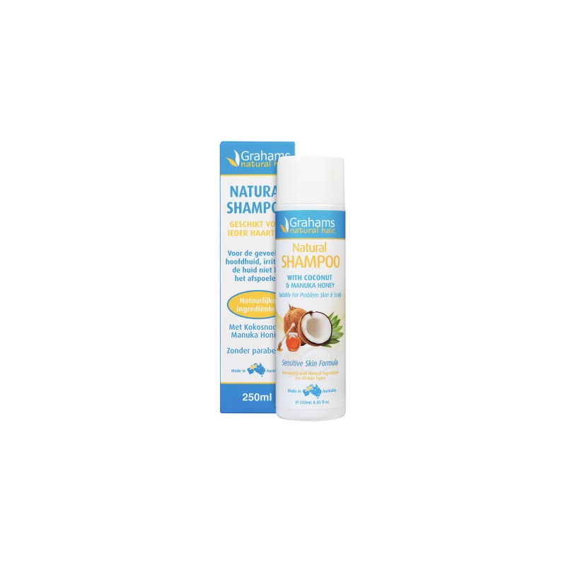 Grahams shampoo werkt verlichtend en verzachtend voor de droge, jeukende en geïrriteerde hoofdhuid. Ook wanneer u geen last heeft van de hoofdhuid maar wel van bijvoorbeeld eczeem of psoriasis op het lichaam, is het aan te bevelen om deze shampoo te gebruiken; het irriteert namelijk niet bij het afspoelen. Zo kunt u ondanks de huidklachten toch gewoon zonder problemen uw haren wassen. De shampoo is als alle Grahams producten hypoallergeen.