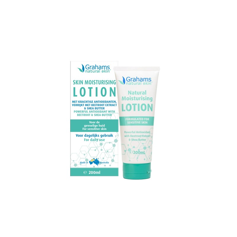 Grahams Skin Moisturising Lotion is een krachtige antioxidanten lotion voor dagelijks gebruik, verrijkt met bietenextract en Shea Butter.